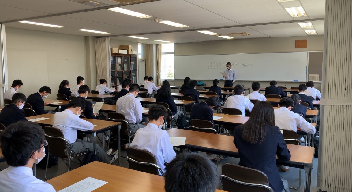 写真は2年生の学年集会とHRの様子です。